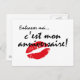 Vai à Internacional no teu aniversário com o nosso design de aniversário francês com uma grande impressão vermelha de beijo. Texto diz EMBRASSER MOI...C'EST MON ANNIVERSAIRE! Beije-me, é meu aniversário em francês. Perfeito para vestir às celebrações e eventos de aniversário. Em T-shirts, roupa, botões, sacos de tote e muito mais! PinkInkArt original!