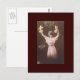 Este é um velho e divertido cartão postal Bonne Annee! Esta apresenta uma mulher com um vestido cor-de-rosa segurando bolsas de dinheiro, enquanto está sob um ramo de Mistletoe. Parece que ela é uma dama de sorte!