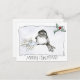 Um Frango giro, empoleirado num galho na neve do inverno, afundou-se contra o frio. Uma aquarela original por Bobcatcreek.com.