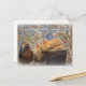 Este cartão postal apresenta galinhas revezando-se no trono do vaso de flores!