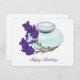 Cartão Postal Frasco de Perfume com Flores Iris Feliz Aniversári
