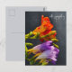 Cartão Postal Freesia em um fundo escuro. Com Sinceros Pesames