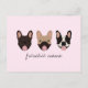 Ilustração de três cachorros de Bulldog franceses de diferentes cores.
