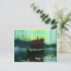 Uma imagem ligeiramente estilizada de uma nave viking que navegava à noite sob as Luzes do Norte, há um casal de icebergs; a maioria da tripulação está dormindo. O texto alemão que lê "Fröhliche Weihnachten" aparece em azul e branco brilhantes. Adicione seu próprio texto adicional.