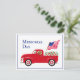 Cartão postal da fronteira do Dia da Memória da Raposa Vermelha Labrador com caminhão vermelho para fãs do Labrador. Desenho do cartoon do Labrador Raposa Vermelha e do caminhão vermelho para o Dia da Memória. Criado por Naomi Ochiai.