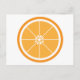 Um simples mas fofo design de uma fatia de fruta laranja feita em branco e laranja num cartão postal.