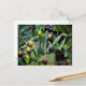 As azeitonas são uma iguaria mediterrânica que cresce em todos os países limítrofes do Mar Mediterrâneo e dos submares. Esta fruta é geralmente cultivada de forma biológica, uma vez que a oliveira é muito resistente e forte. Estas azeitonas verdes estão amadurecendo a preto enquanto penduram no galho. Este cartão postal é totalmente personalizável.