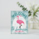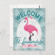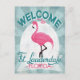 Ft Lauderdale Florida rosa flamingo. No estilo de posters viagens vintage, ele diz "Bem-vindo a Ft Lauderdale, Flórida" em turquesa verde rosa, branca e menta.