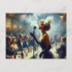 Esta imagem mostra uma cena de uma cantora que se apresenta no palco, segurando um microfone. O cenário parece ser uma discoteca ou um clube de jazz de estilo retrô, com iluminação fraca e uma plateia sentada nas mesas. A cantora está vestindo um vestido elegante e tem um acessório de cabelos de penas, sugerindo uma era passada que lembra o 1920 dos anos 1930. A atmosfera evoca o glamour clássico e o ambiente da música ao vivo em um cenário íntimo.