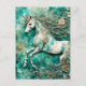Cartão Postal Fundo de Teal de Unicórnio Branco Magro