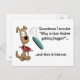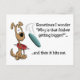 Às vezes me pergunto por que esse Frisbee está ficando maior?... e então ele me atinge. Cartaz engraçado com um cachorro tocando Frisbee.