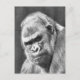 Um design fotográfico preto e branco de um gorila cinza engraçado.