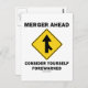 Você está envolvido em fusões e aquisições ou sua organização foi fundida em outra? Os fãs de psicologia organizacional vão desfrutar de qualquer um desses sinais de transporte que incluem o aviso da zona de fusão, juntamente com o truísmo organizacional que diz para qualquer um que tenha estado envolvido em uma reorganização: "Fusão à frente Considere-se Encaminhado". Faça com que outros façam uma dupla tomada com qualquer um desses presentes de humor de sinalização! Dons magníficos de política de escritório para todos!
