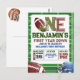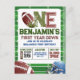 Pronto para uma festa de aniversário de futebol? Este design apresenta itens de aquarela pintados à mão, como um capacete de futebol e bola de futebol, juntamente com a tipografia "First Year Down" e "Little Rockie". Todo o texto é editável neste convite de aniversário e cartões-postais econômicos também estão disponíveis! O design é adequado para meninos e é totalmente personalizável para 1º aniversário, 2º aniversário e crianças mais velhas. Encontre itens correspondentes na minha loja.