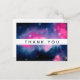 Cartão de agradecimento com um belo design abstrato em rosa e azul. Estrelas brancas espalhadas por toda esta imagem do cosmos. Trippy e legal.