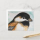 Desfrute de uma charmosa galinha num cartão postal criado da minha pintura de aquarela original. Perfeito para observadores de pássaros e fãs de pássaros bonitos do quintal. As lindas cores do preto, do marrom e do creme são concebidas para mostrar pequenos detalhes próximos de uma galinha.