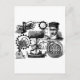 Aqui está um design gráfico preto-e-branco que apresenta os ideais de invenções galantejeiras ou vitorianas. Adicione seu próprio texto ou instrução para personalizar este maravilhoso design. Excelente como presente para inventores, professores, cientistas, inovadores, formadores de declarações, designers e muito mais. Apresentam-se: motor a vapor e avião flutuante, engrenagens, homem googleado, lâmpada, máquina de escrever, bicicleta, mão e cavaleiro, relógio e bússola.
