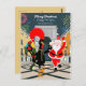 Cartão Postal Galo Português e Papais noeis brindam ao Ano Novo