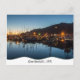 Um cartão postal Garibaldi, Oregon, mostrando o porto à noite com o 'G' aceso na encosta.