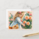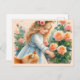 Cartão Postal Garota Adorável Escolhendo Rosas com seu Gato