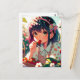 Cartão Postal Garota Anime Fofa Comendo Morangos