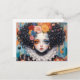 Cartão Postal Garota Bonito Whimsical com Flores Coloridas
