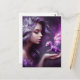 Uma garota com cabelo roxo segura um adorável e pequeno dragão roxo fantasia arte gerada por IA