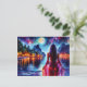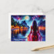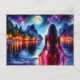Cartão Postal Garota da praia do Dreamy ocean com lua e luzes