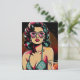 Cartão Postal Garota de Capa Ilustrada em Estilo Retrô de Aniver