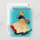 Cartão Postal Garota dourada da caixa de presentes de natais vin