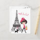 Cartão Postal Garota e gato bonitos na Torre Eiffel de Paris