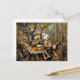 Cartão Postal Garota pequena com coruja em uma Tree Root House
