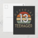 Cartão Postal Garota Retro Menino Aniversário de 13 Anos Oficial