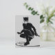 Essa impressionante representação gráfica captura a Mulher-Gato em seu elemento, mostrando sua agilidade e furtividade enquanto se prepara para a ação. A ilustração é feita em preto e branco ousados, enfatizando a elegância de seu traje e o movimento dinâmico de sua pose. A Mulher-Gato é retratada agachada com um chicote enrolado ao seu lado, seu olhar focado e calculista. O efeito de tinta respingada ao seu redor adiciona um senso de urgência e ao ambiente caótico em que ela prospera. Essa obra de arte não apenas destaca o status icônico da Mulher-Gato como uma ladra habilidosa e anti-heroína, mas também sua complexa relação com Gotham e seu cavaleiro das trevas. É uma representação poderosa de uma das aliadas e adversárias mais enigmáticas e formidáveis do Batman.
