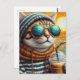 Um gato adorável com um café gelado ou uma frapura vestindo um chapéu e uma arte gerada por IA suadora
