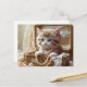 Cartão Postal Gatinho bonito com pérolas sentadas em uma caixa d