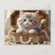 Cartão Postal Gatinho bonito sentado em uma caixa de joias