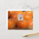 O gatinho persa de prata sombreado fica entre as abóboras e se abre como se perguntasse onde estão as comidas. Apropriado para o Dia das Bruxas ou Ação de Graças ou apenas um gato ama olá de outono.