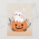 Cartão Postal Gatinho Fofo Sentado no Abóbora Halloween Moderno