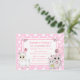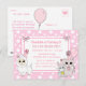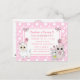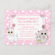 Docinho desenhado à mão, gatinho, ratinho e lama, arcos de bolinhas brancas e cor-de-rosa, convites de aniversário meninas.