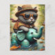 Um gato engraçado caminha sobre uma boia elefante inflável enquanto explora a arte gerada pela IA do rio