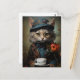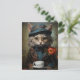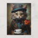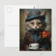 Cartão Postal Gato Adorável de fato com café