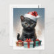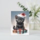 Cartão Postal gato bonito com a ilustração do chapéu de Santa