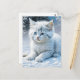 Cartão Postal Gato Branco Bonito Brincando na Neve