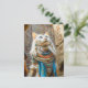 Cartão Postal Gato Branco como Sacerdote Alto em Trona