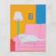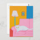Cartão Postal Gato Branco num sofá cor-de-rosa