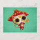 Durante o Dia dos Mortos, todos os humanos e animais estão nas ruas para celebrar. Até os Cats mexicanos estão tirando suas fantasias e instrumentos de rico e jogando e dançando nas bandas de Mariachi. Este gato mexicano está tocando trompete, vestindo chapéu colorido, roupas e adorável maquiagem de crânio de açúcar. Saia e aproveite o Dia de Los Muertos com ele! Por favor, dê uma olhada em mais Dia dos Mortos em nossa loja.