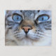 Este design apresenta uma imagem adorável de um gato olhando determinado para a câmera. Tem um belo casaco de pelo cinza.