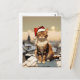 Cartão Postal gato com chapéu de santa no telhado