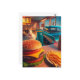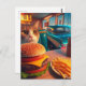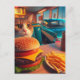 Cartão Postal Gato com Cheeseburger e Fries no Retro Diner